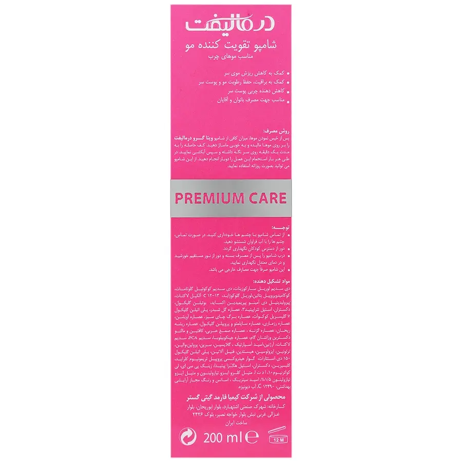 شامپو تقویت کننده ویتـاگرو درمالیفت محصولی تخصصی برای افرادی است که موهای چرب دارند و در عین حال با مشکل ریزش مو مواجه هستند. این شامپو با کنترل و تنظیم ترشح چربی غدد پوست سر، از ایجاد حالت سنگینی و کدر شدن مو جلوگیری میکند و به دلیل ترکیبات تقویتی خود، به رشد بهتر و حفظ سلامت مو کمک مینماید.یکی از مهمترین ویژگیهای این شامپو، جلوگیری از ریزش مو و تقویت فولیکولهاست. ویتاگرو با بهرهگیری از ترکیبات مغذی و ویتامینهای ضروری، تارهای مو را تقویت کرده و رطوبت طبیعی آنها را حفظ میکند. فرمولاسیون آن فاقد سولفات، نمک و پارابن بوده و همین امر باعث میشود بدون آسیب به موها، اثرگذاری بالایی داشته باشد