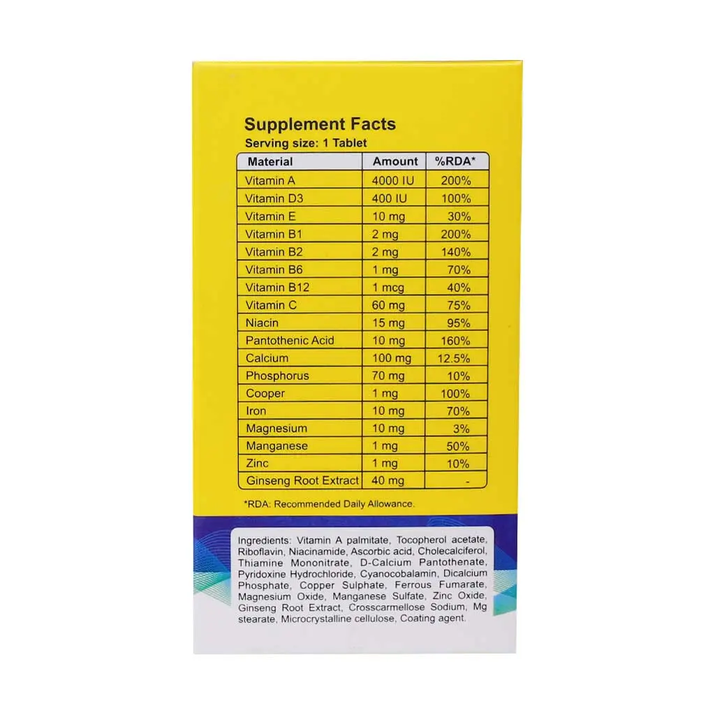 قرص مولتی دیلی دکتر گیل یک مولتیویتامین-مینرال کامل به همراه جینسینگ است که میتواند انرژی، ایمنی و سلامت عمومی بدن را تقویت کند. این محصول انتخابی مناسب برای افرادی است که بهدلیل رژیم غذایی نامتعادل، استرس، افزایش سن یا فعالیت بدنی بالا در معرض کمبود ریزمغذیها قرار دارند.