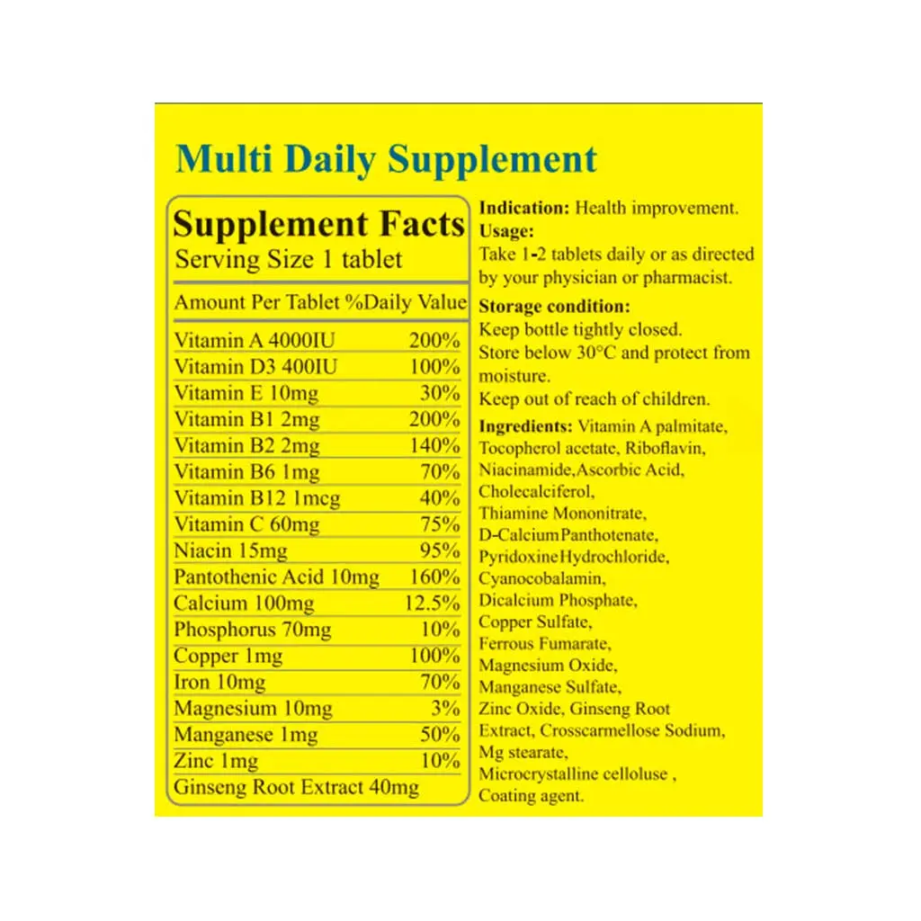 قرص مولتی دیلی دکتر گیل یک مکمل تغذیهای جامع و کامل است که با ترکیبی از انواع ویتامینها، مواد معدنی ضروری و عصاره گیاه ارزشمند جینسینگ فرموله شده است. این مکمل با هدف تأمین نیاز روزانه بدن به ریزمغذیها و جلوگیری از بروز کمبودهای تغذیهای طراحی شده و میتواند به صورت روزانه از سلامت عمومی بدن حمایت کند.