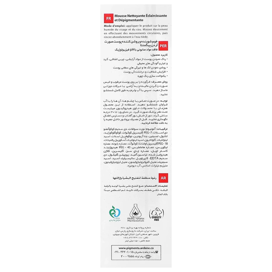 ترکیبات فوم شوینده و روشنکننده صورت پیگمنتا آردن