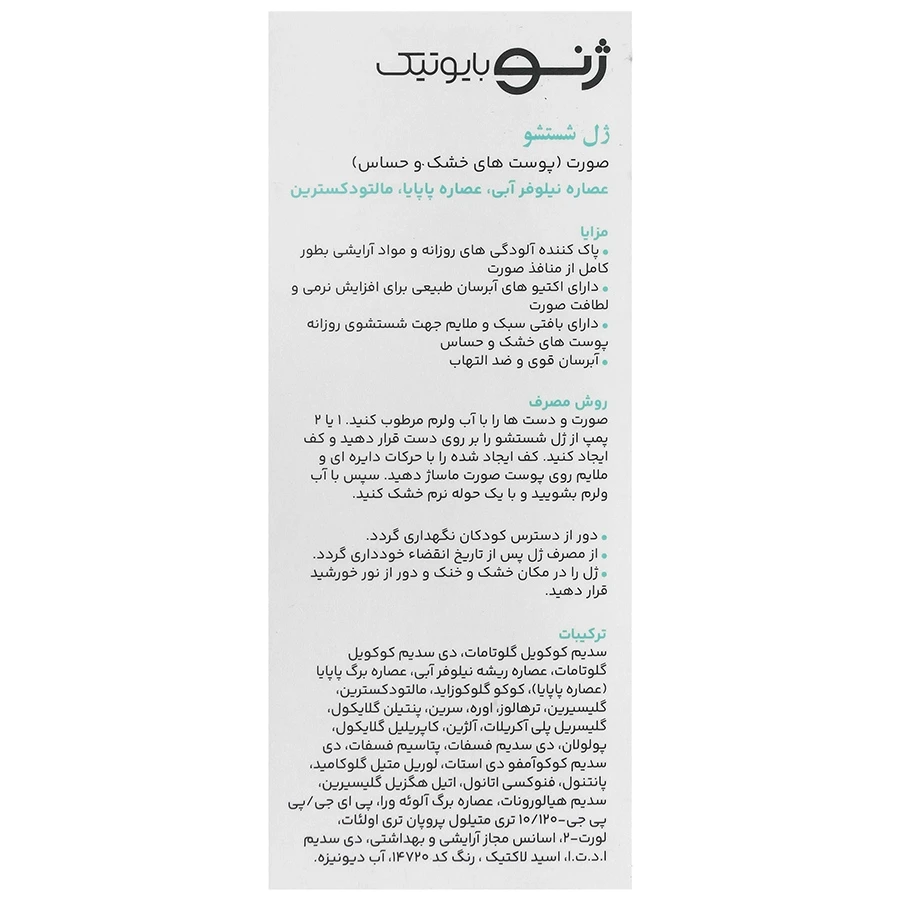 روش مصرف ژل شستشوی صورت کلین ژن پوست خشک ژنوبایوتیک