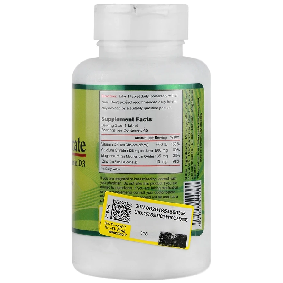 | کلسیم ( کلسیم سیترات ) | Calcium ( as Calcium Citrate ) | 600 mg | 60% |