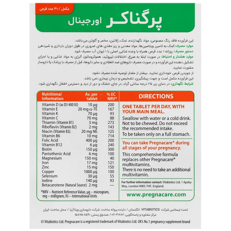 - پرگناکر اورجینال ویتابیوتیکس