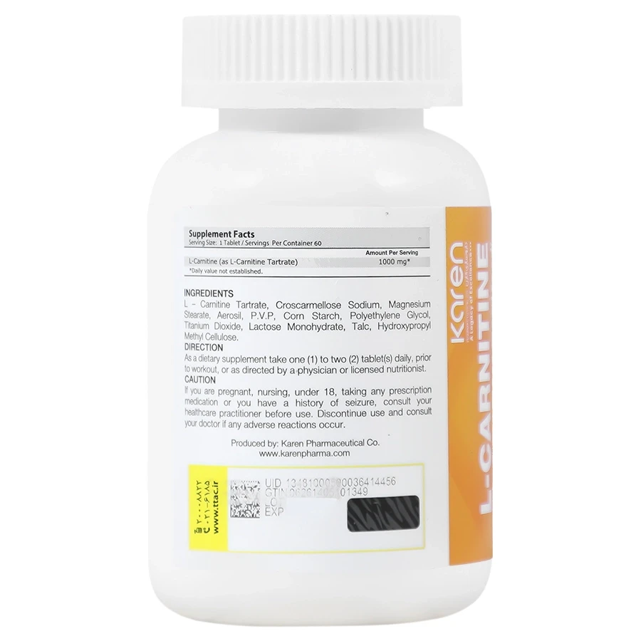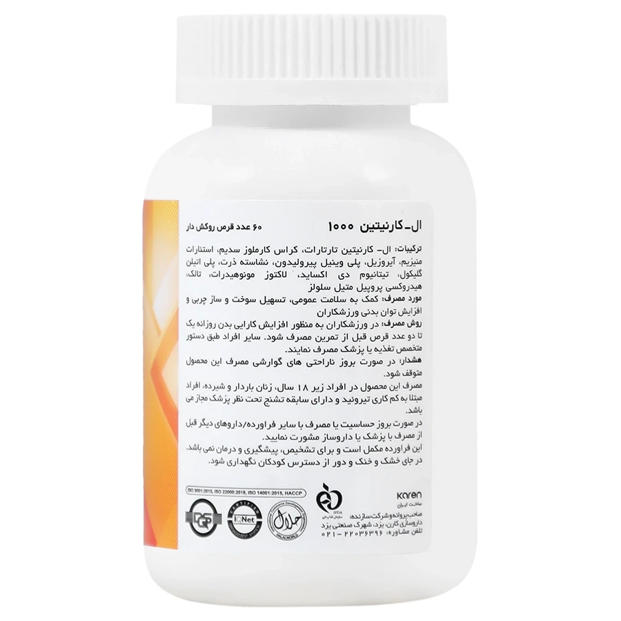 این مکمل به فرم قرص خوراکی و در بستهبندی 60 عددی توسط شرکت معتبر کارن تولید میشود و بهصورت مصطلح با عنوان کپسول الکارنیتین 1000 نیز شناخته میشود. مصرف منظم آن میتواند به کاهش خستگی حین فعالیت بدنی، افزایش استقامت و تسریع ریکاوری عضلات پس از تمرین کمک کند.